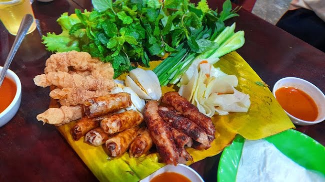 - Nem nướng có mùi thơm đặc trưng và vị ngọt từ thịt heo nướng trên than.